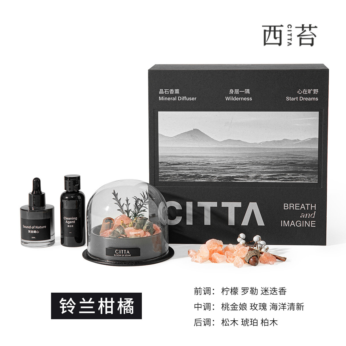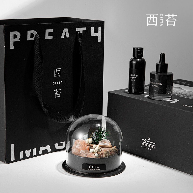 香薰精油30ml 天然晶石200g永生植物*1 晶石清洗液50ml 陶瓷容器*1 玻璃罩*1 皮垫*1 礼盒*1 礼袋*1
